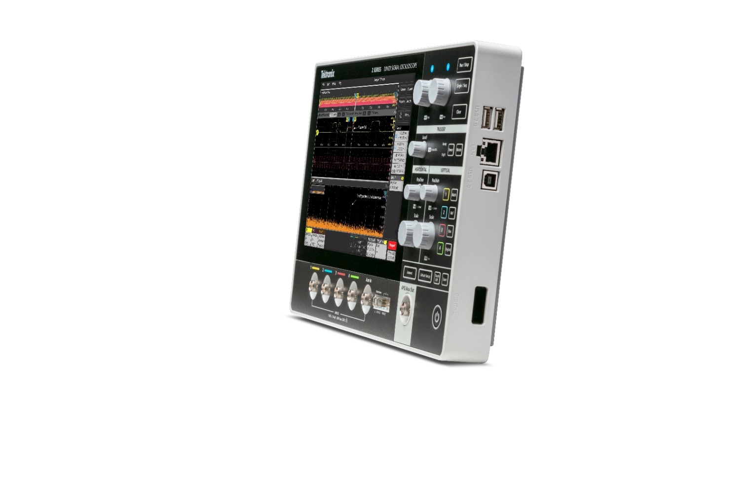厚さわずか4cm、質量1.8kgの2シリーズMSOは、タブレットのようにコンパクトでポータブルな形状を備えた、フル機能のリアルタイム・タッチスクリーン・オシロスコープです。